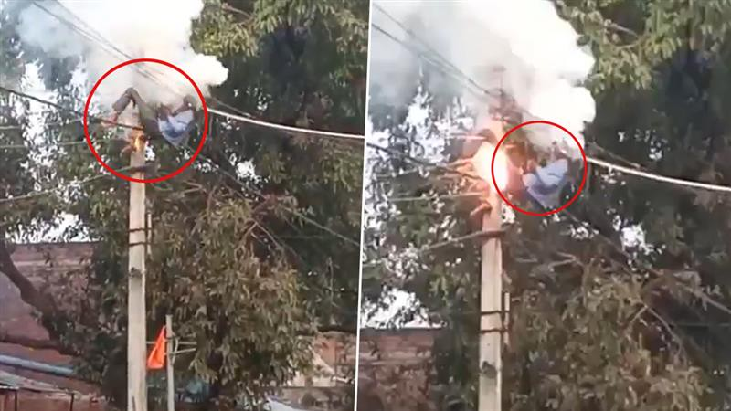 A heart-wrenching video that has gone viral depicts a tragic incident that occurred in the Rajpur area of Kanpur Dehat district. The footage shows a lineman climbing a utility pole to repair a power line.