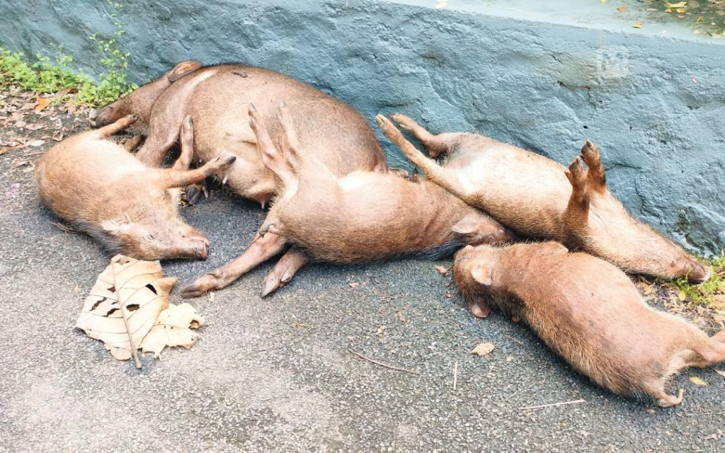 റോഡില് മണിയാറ്റ് ഓഡിറ്റോറിയത്തിന് സമീപം അപകടം നടന്നിരിക്കുന്നു എത്രയും പെട്ടെന്ന് സ്ഥലത്തെത്തണമെന്നുള്ള സന്ദേശമായിരുന്നു അത്. ഡ്യൂട്ടിയില് ഉണ്ടായിരുന്ന സി.പി.ഒ. അഭിലാഷ് ഉടൻതന്നെ സ്ഥലത്തെത്തി. കാറിടിച്ച് തള്ളയും കുട്ടികളും അടങ്ങുന്ന പന്നിക്കൂട്ടം റോഡില് ചിതറിക്കിടക്കുന്നു.