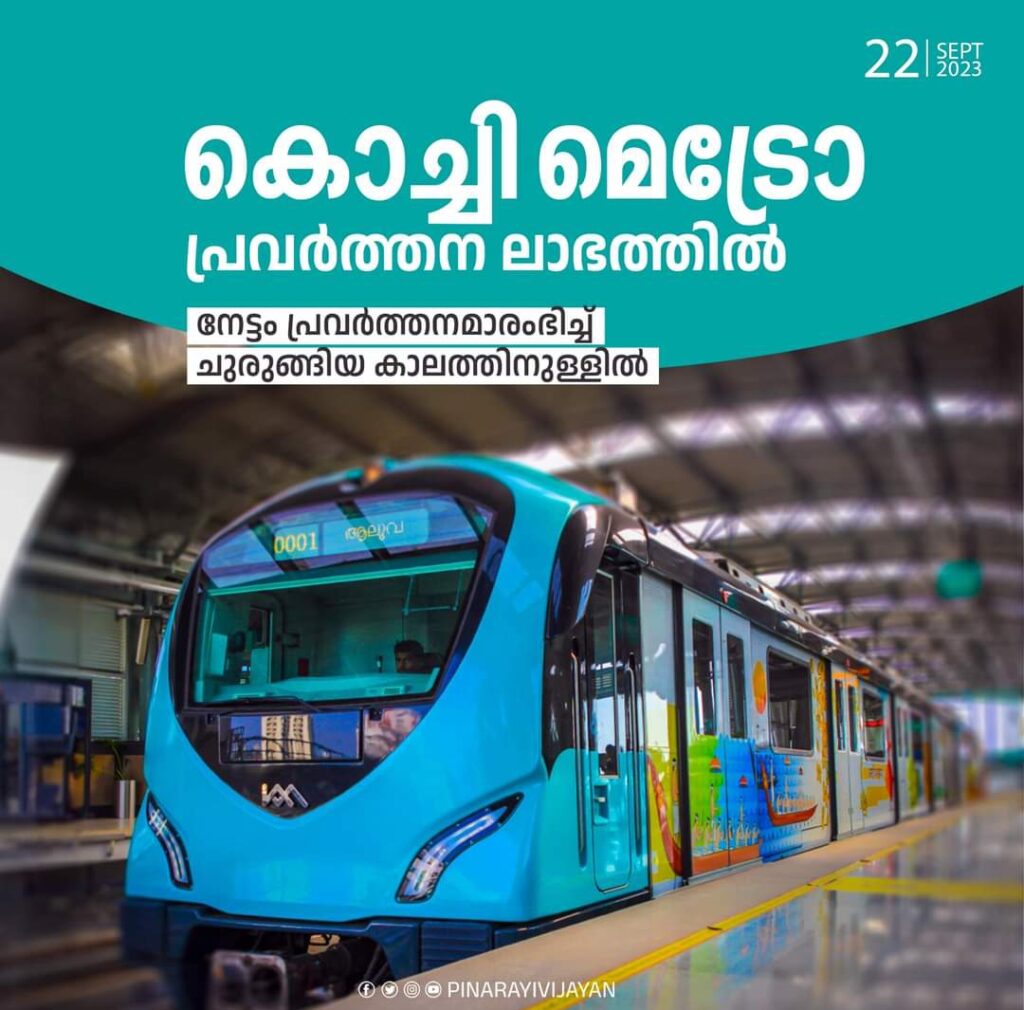അത്യാധുനിക പശ്ചാത്തല സൗകര്യങ്ങൾ ഏതൊരു വികസിത സമൂഹത്തിനും അനിവാര്യമായ കാര്യമാണ്. ഒരു വിജ്ഞാന സമൂഹമായി കേരളത്തെ വാർത്തെടുക്കാൻ വിവിധ നടപടികളുമായി മുന്നോട്ടുപോകുകയാണ് എൽഡിഎഫ് സർക്കാർ. കാര്യക്ഷമവും വികസിതവുമായ പൊതുഗതാഗത സംവിധാനങ്ങളൊരുക്കാനും സർക്കാർ പദ്ധതികൾ ആവിഷ്കരിച്ചുവരുന്നു. കേരളത്തിന്റെ അഭിമാന സംരംഭമായ കൊച്ചി മെട്രോ പ്രവർത്തന ലാഭം കൈവരിച്ചിരിക്കുന്നുവെന്നത് നമ്മുടെ ഈ വികസനക്കുതിപ്പിന് ശക്തി പകരും.