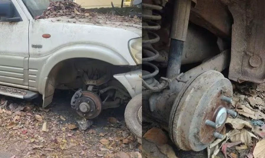 സ്കോര്പ്പിയോ എസ്യുവിയുടെ മുന്നിലെ ഒരു ടയറും പിന്നിലെ രണ്ട് ടയറുകളും ഇയോണ് കാറിന്റെ പിന്നിലെ ഒരു ടയറുമാണ് മോഷ്ടിക്കപ്പെട്ടത്. പാറശ്ശാല ബ്ലോക്ക് ഓഫീസിന്റെ മതിലിനോട് ചേര്ന്ന് പോലീസ് സ്റ്റേഷന് റോഡില് സബ്ബ് ട്രഷറി, വില്ലേജ് ഓഫീസ്, 24 മണിക്കൂറും പ്രവര്ത്തിക്കുന്ന മൃഗാശുപത്രി എന്നീ സര്ക്കാര് സ്ഥാപനങ്ങള്ക്ക് മുമ്ബിലാണ് രണ്ട് വാഹനങ്ങളും നിര്ത്തിയിട്ടിരുന്നത്.