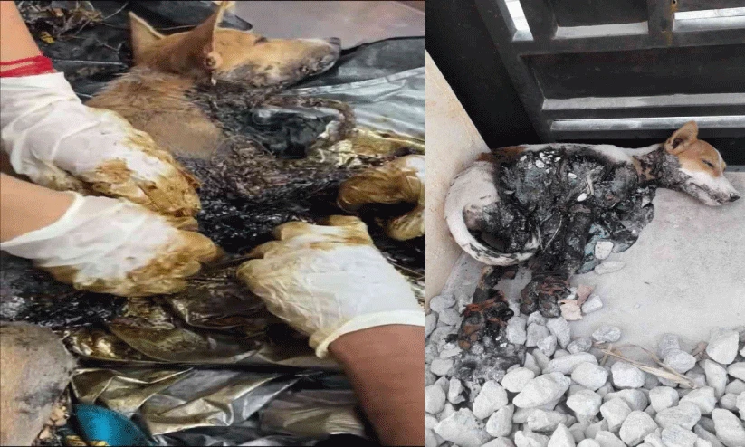 പ്രദേശത്ത് റോഡു പണിക്കായി ശേഖരിച്ചുവെച്ചിരുന്ന ടാറിലാണ് സാമൂഹികവിരുദ്ധര് നായ്ക്കളെ മുക്കിയതെന്നാണ് പ്രദേശവാസികളുടെ സംശയം.