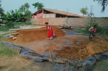 Preparing compost, the medium for cultivating button mushrooms. Pic: Pratibha Jha