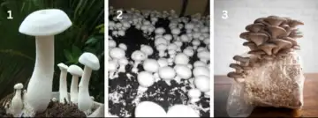 Pratibha Jha grows (1) milky white, (2) button and (3) oyster mushrooms.