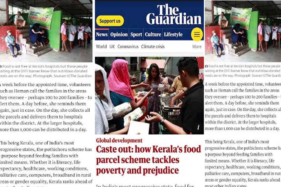 ജാതിയെ പുറത്താക്കി സ്നേഹം പൊതിഞ്ഞെടുക്കുകയാണ് കേരളമെന്ന് ചൂണ്ടിക്കാട്ടുകയാണ് ഗാര്ഡിയന് പത്രം. ആയുര്ദൈര്ഘ്യത്തിലും വിദ്യാഭ്യാസത്തിലും ലിംഗ സമത്വത്തിലുമെല്ലാം ഇന്ത്യയുടെ ആകെ ശരാശരിയേക്കാള് എത്രയോ കാതം മുമ്പിലോടിയ കേരളം ഡിവൈഎഫ്ഐയിലൂടെ പങ്കുവെപ്പിന്റെ പുതിയ പാഠം പഠിപ്പിക്കുകയാണ്. ഓരോ അടുക്കളയിലും മടക്കുന്ന ചോറുപൊതി ആരുടെ വിശപ്പാണ് മാറ്റുക എന്നതറിയാത്ത പങ്കുവയ്പ്പിന്റെ സമരപാഠം. വിളമ്പുന്ന കൈകളുടെ ജാതി ചോദിക്കുന്ന മനുഷ്യരുള്ള രാജ്യത്ത് കേരളത്തിലെ യുവത തീര്ക്കുന്ന മാതൃകയ്ക്ക് അഭിവാദ്യമറിയിക്കുകയാണ് ഗാര്ഡിയന്. മുഴുവന് അടുക്കളകളുടെയും മനുഷ്യത്വത്തിന്റെ പങ്ക് കൂട്ടി ഊണ് കഴിക്കുന്ന, മറ്റൊരു നാടിനും ഏറ്റെടുക്കാന് കഴിയാത്ത മാതൃക വിജയിപ്പിച്ചെടുക്കുകയാണ് കേരളം.